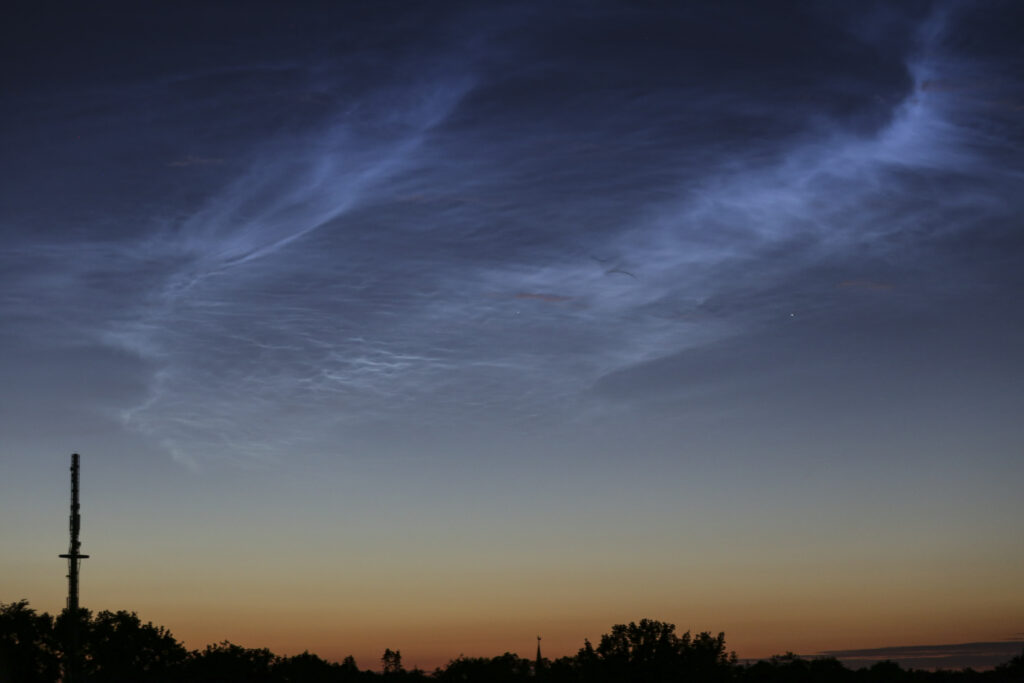 Wolken sind der größte Feind der Astrofotografie – sie verdecken den Himmel und machen Aufnahmen unmöglich. Doch es gibt eine Ausnahme: Leuchtende Nachtwolken (NLCs). Diese seltenen, silbrig-blauen Wolken bestehen aus Eiskristallen und befinden sich in etwa 80 km Höhe in der Mesosphäre. Sie leuchten, weil sie nach Sonnenuntergang noch von der Sonne angestrahlt werden. Während sie für Deep-Sky-Fotografen störend sein können, sind sie selbst ein faszinierendes Motiv. Besonders in den Sommermonaten zwischen Mai und Juli sind NLCs in höheren Breitengraden ein beeindruckendes Spektakel.